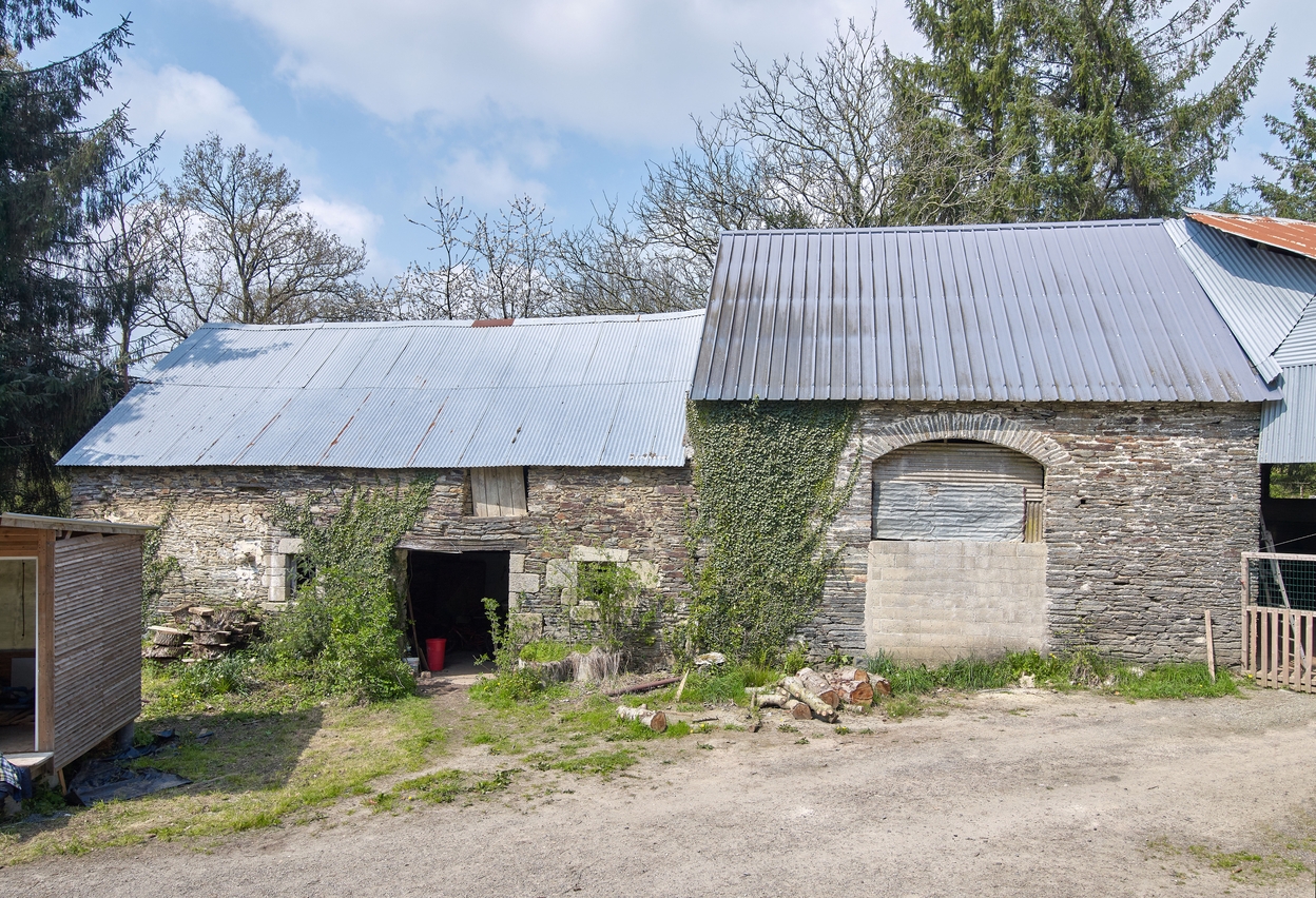 Alignement des deux granges à l'ouest de la cour. Façades est.Immatriculation