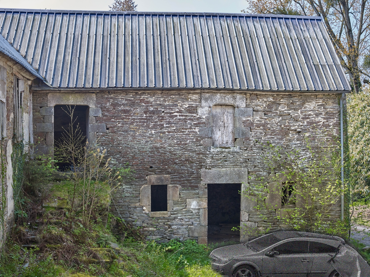 Retour de la dépendance est. Logis sur dépendance. Façade nord.Immatriculation