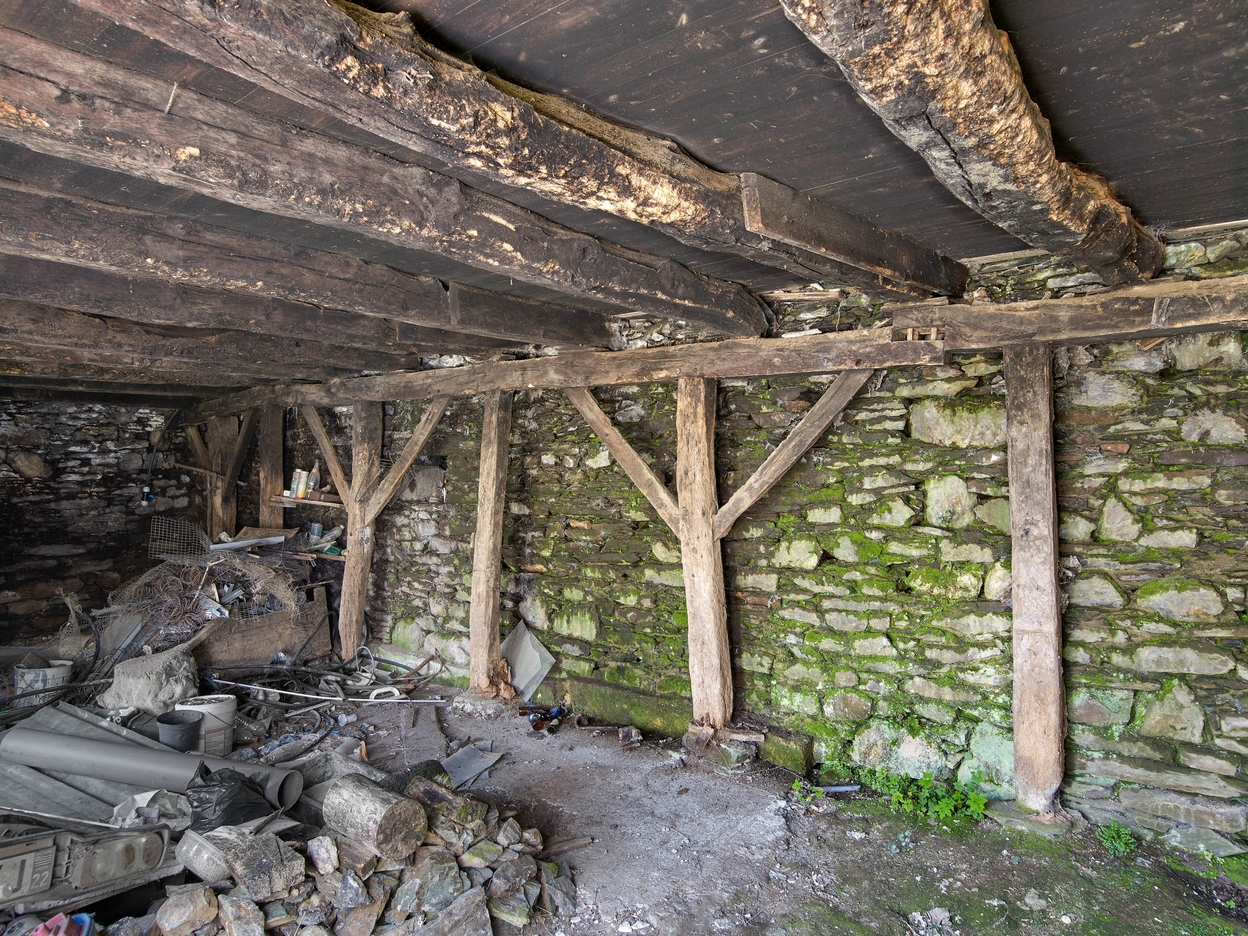 Dépendance à usage de pilerie. Rez-de-chaussée ouvert. Système de poutres de soutènement.Immatriculation