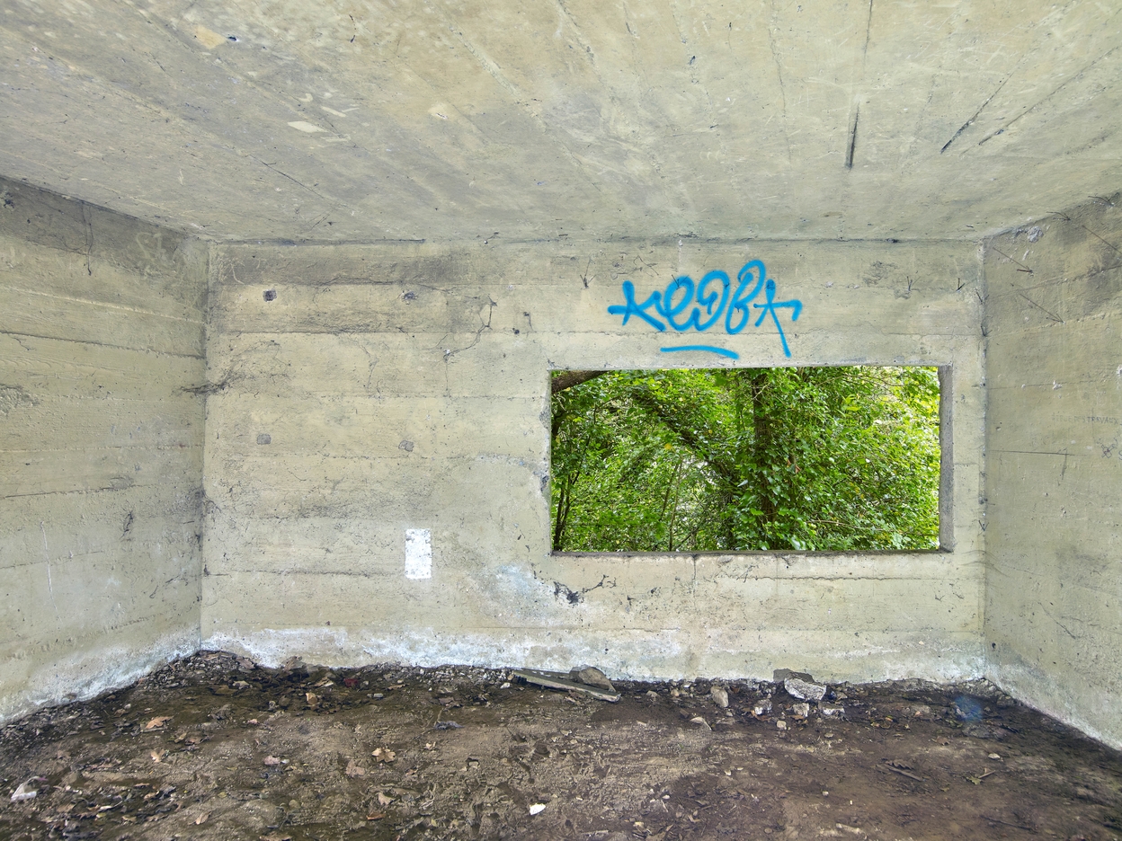 Vue de l'embrasure rectangulaire depuis l'intérieur de la chambre de tirImmatriculation