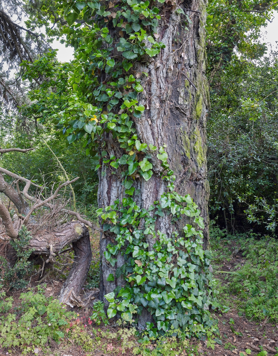 Vue du pin de Monterey (Pinaceae) ayant servi de poste d'observation : troncImmatriculation