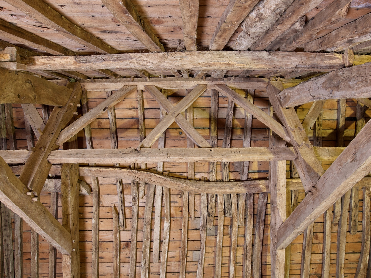 Logis 1831. Charpente à sous-faitière contreventée par des liens de faîtage et des croix de Saint-AndréImmatriculation