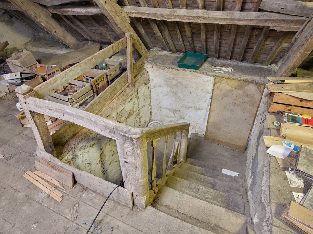 Logis 1831. La cage d'escalier depuis le grenierImmatriculation