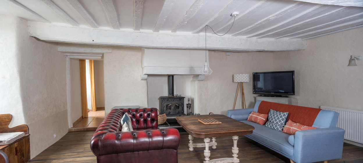 Logis ouest, pièce à feu du rez-de-chaussée, vue généraleImmatriculation