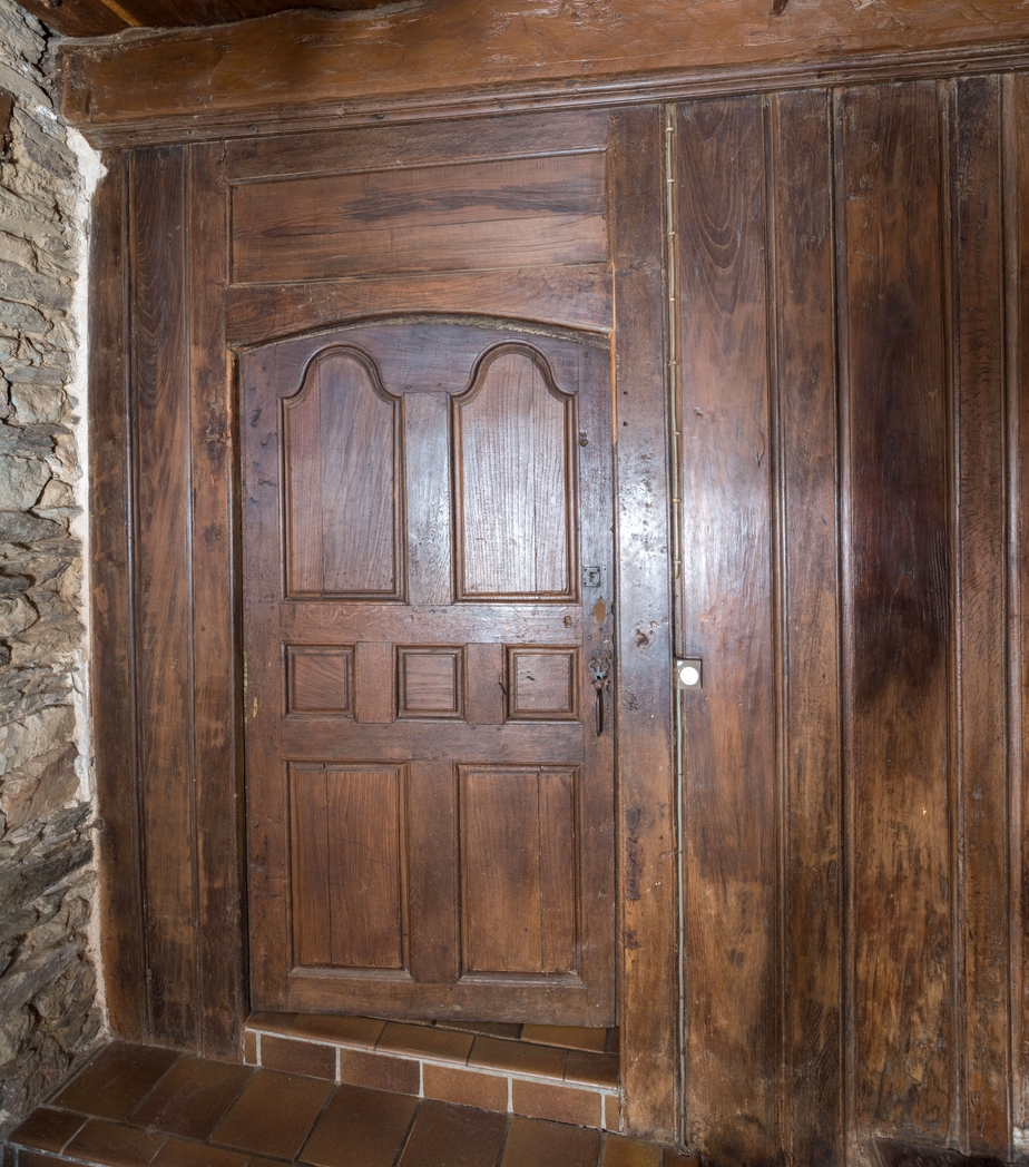 Logis 1774. Vestibule d'entrée. Porte de la salle et cloison en menuiserieImmatriculation