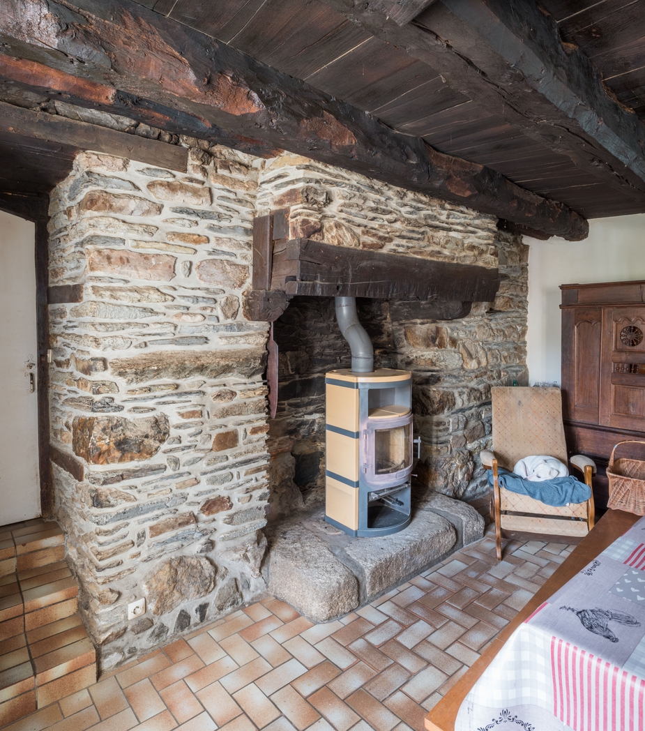 Logis-étable fin 18e ou début 19e siècle. Cheminée de la salle. Vue généraleImmatriculation