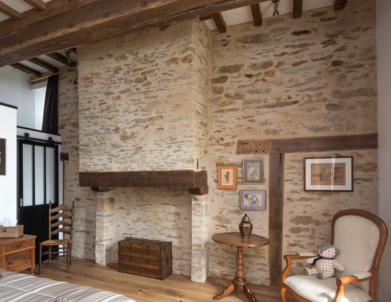 Logis, chambre chauffée de l'étage, vue générale de la cheminée (boisée à l'origine)Immatriculation