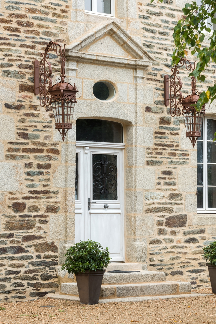 Logis, élévation sud, porte d'entrée avec dessus-de-porte à oculus surmonté d'un fronton triangulaireImmatriculation