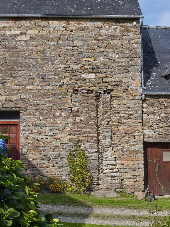 Logis à fonctions multiples, 2e moitié 17e siècle. Façade sud, bout à l'est. Traces d'ancrage de l'ancien portail d'entréeImmatriculation