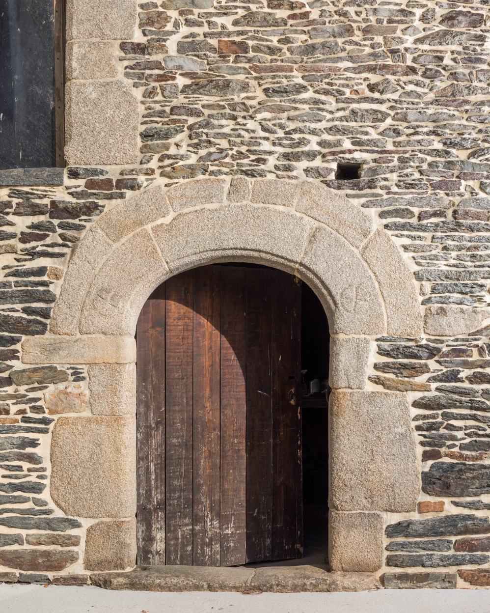 Logis fin 16e siècle. Elévation sud. Détail de la porte d'entrée à double linteau cintréImmatriculation