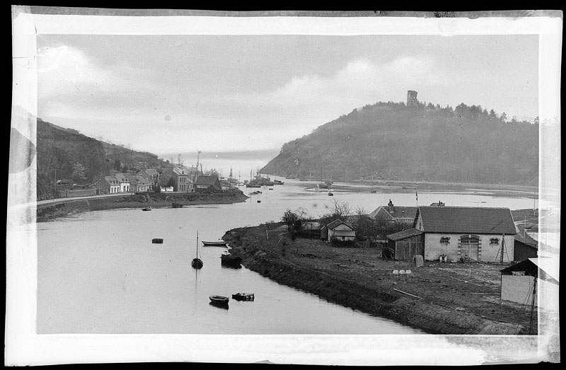 Vue du port du Légué, vers 1906-1936. A l'arrière-plan à droite, dominant le Gouët, la Tour Cesson.