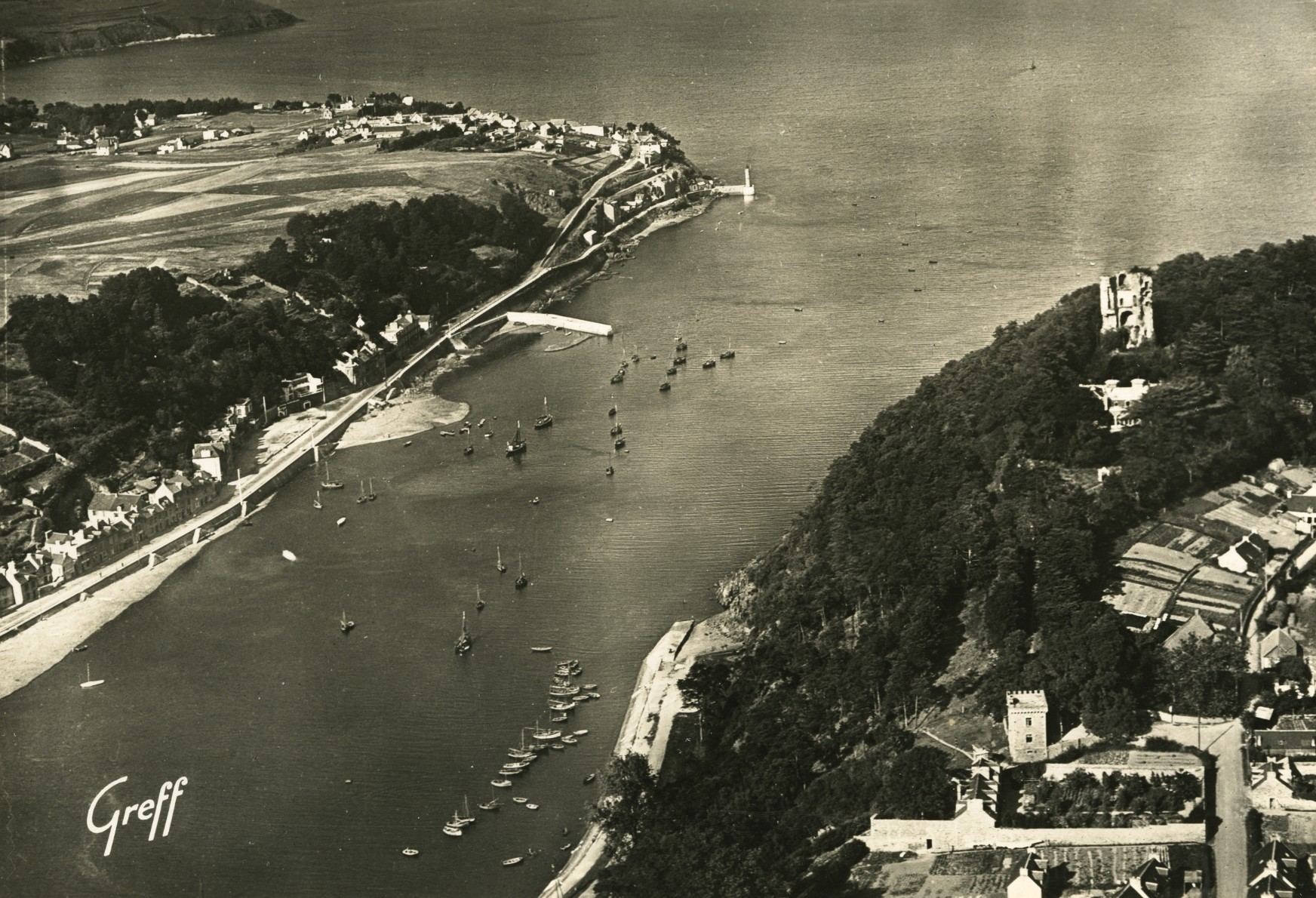 Vue aérienne oblique de l'embouchure du Gouët, carte postale (Greff).