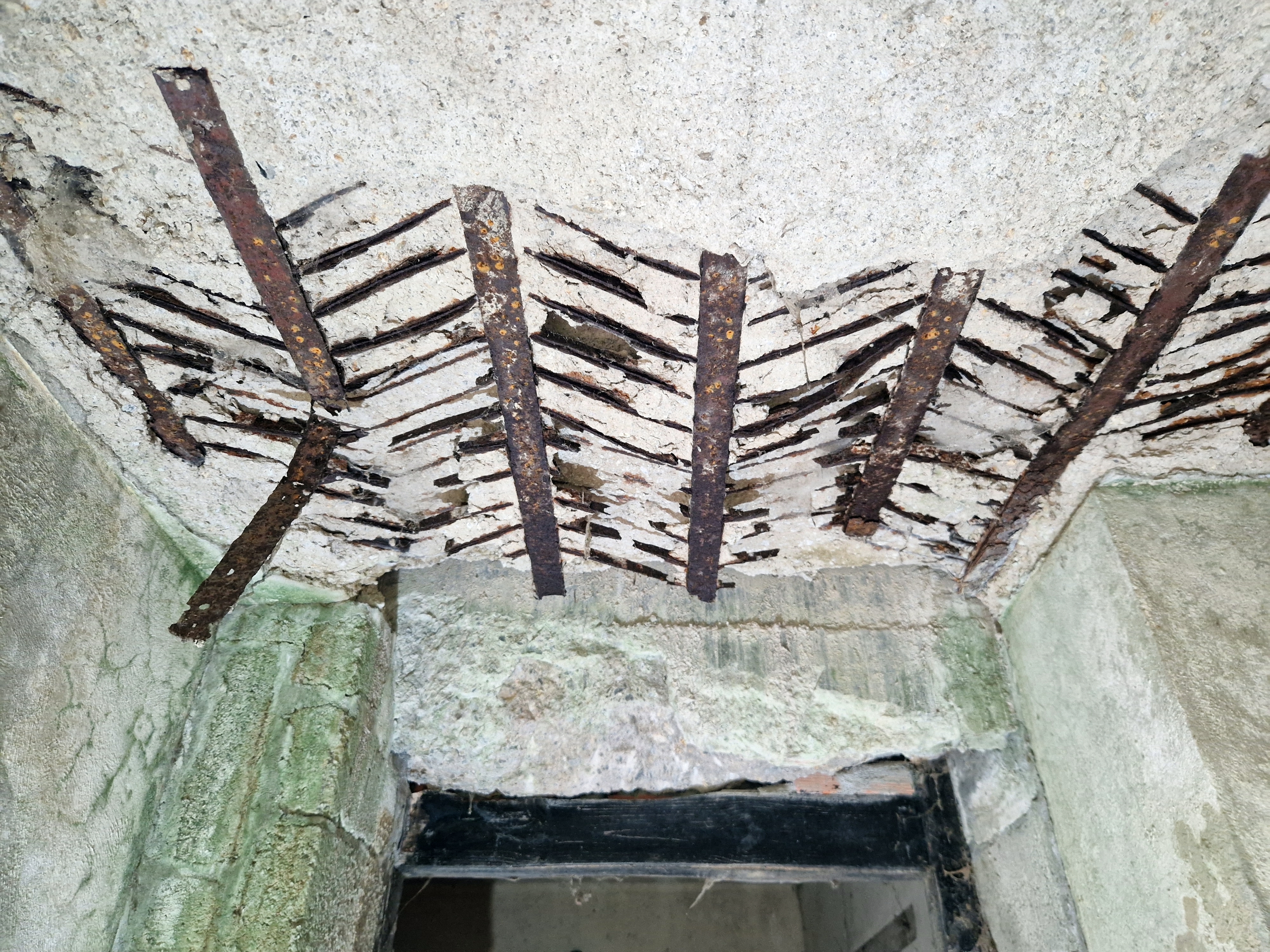 Vue du ferraillage de la dalle de couverture composé de grilles métalliques de roulement pour piste d’avionImmatriculation