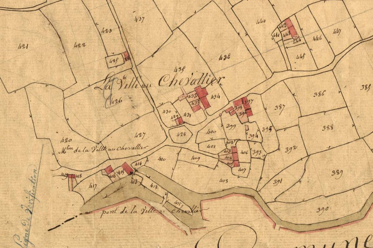 Le bourg du Quillio en 1828. Extrait du cadastre ancien, section C1 (série 3 P 265, Archives départementales des Côtes-d'Armor)Immatriculation