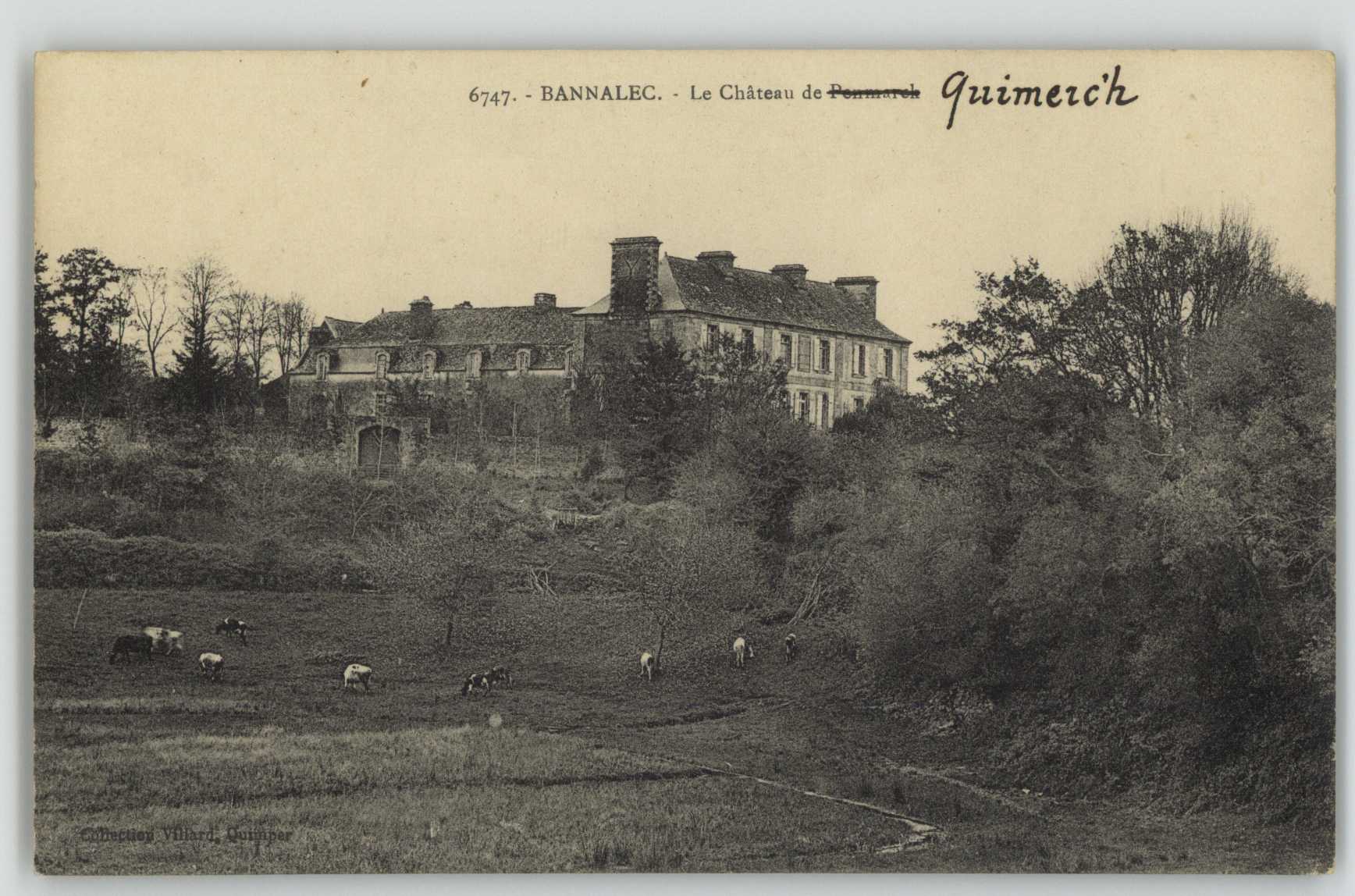 Vue générale du château de Quimerc'h depuis l'ouest au début du 20e siècle, carte postale.