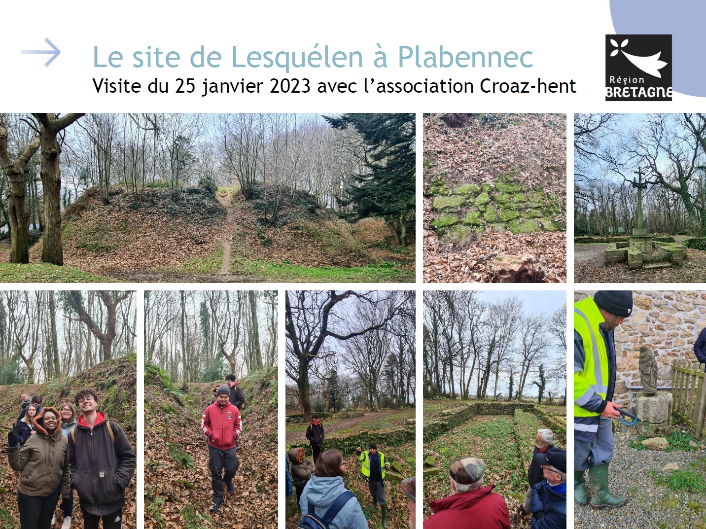 Vue de la visite du site organisée entre les membres de l'association Croaz-hent de Plabennec et les étudiants du Master 1 Langues et Cultures Celtiques en Contact de l'Université de Bretagne OccidentaleImmatriculation