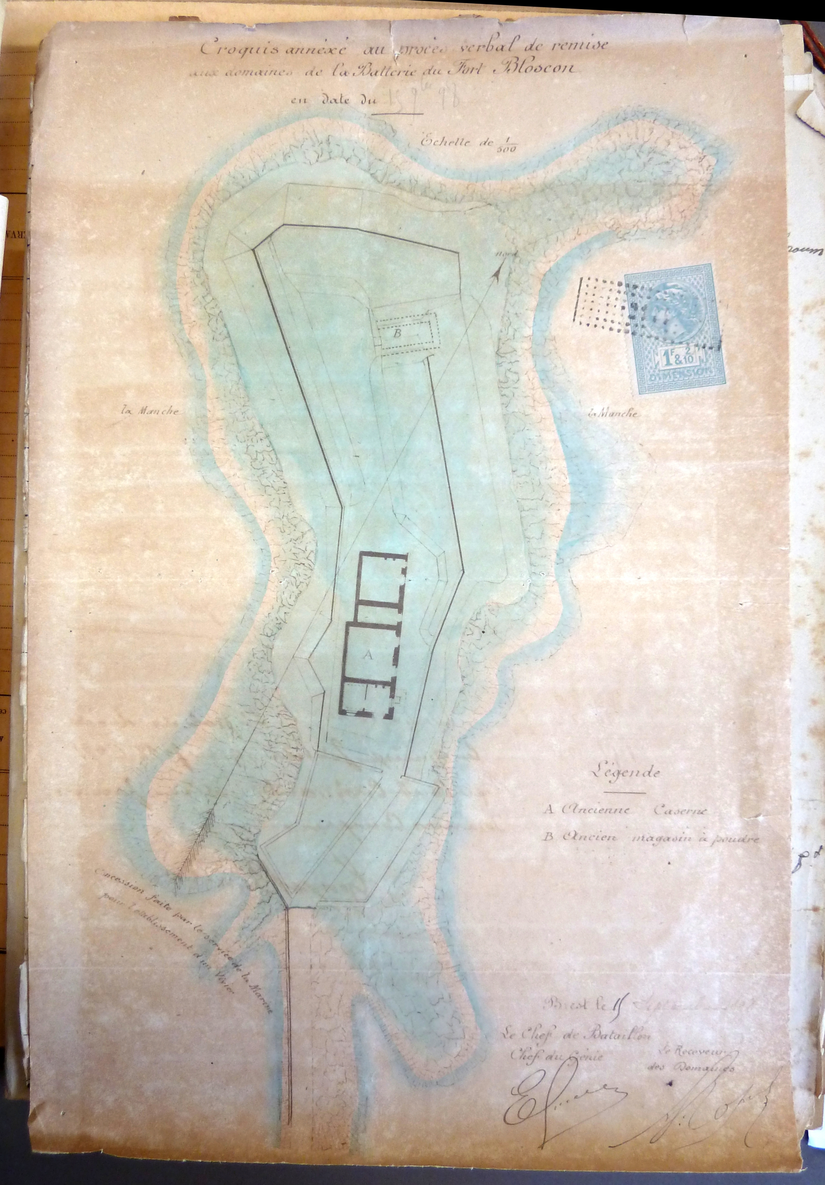 Croquis annexé au procès-verbal de remise à l’administration des Domaines de la batterie du fort Bloscon, 15 septembre 1898Immatriculation