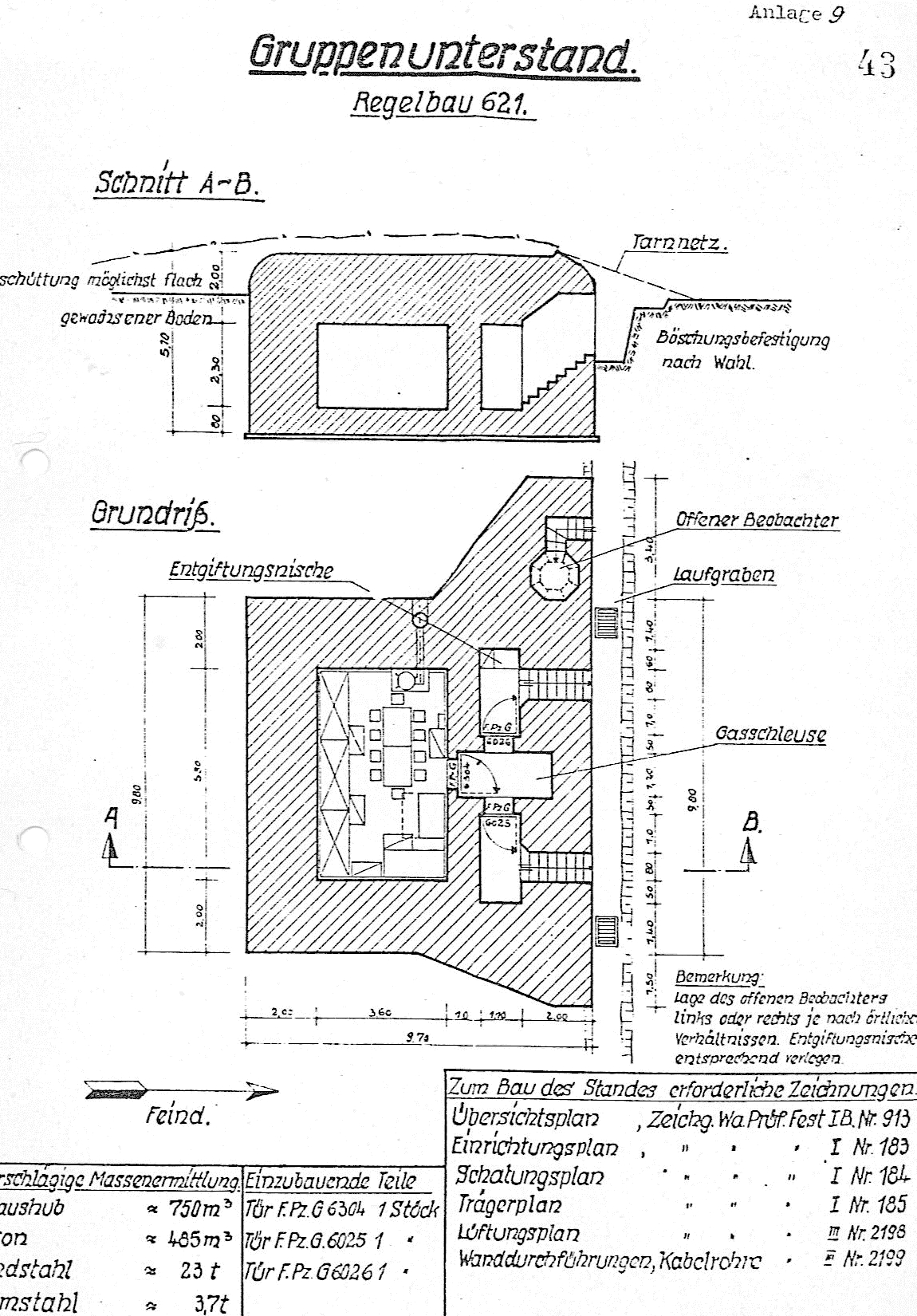Plan-type d'un bunker - abri de type 621 (Gruppenunterstand für 10 Mann)Immatriculation