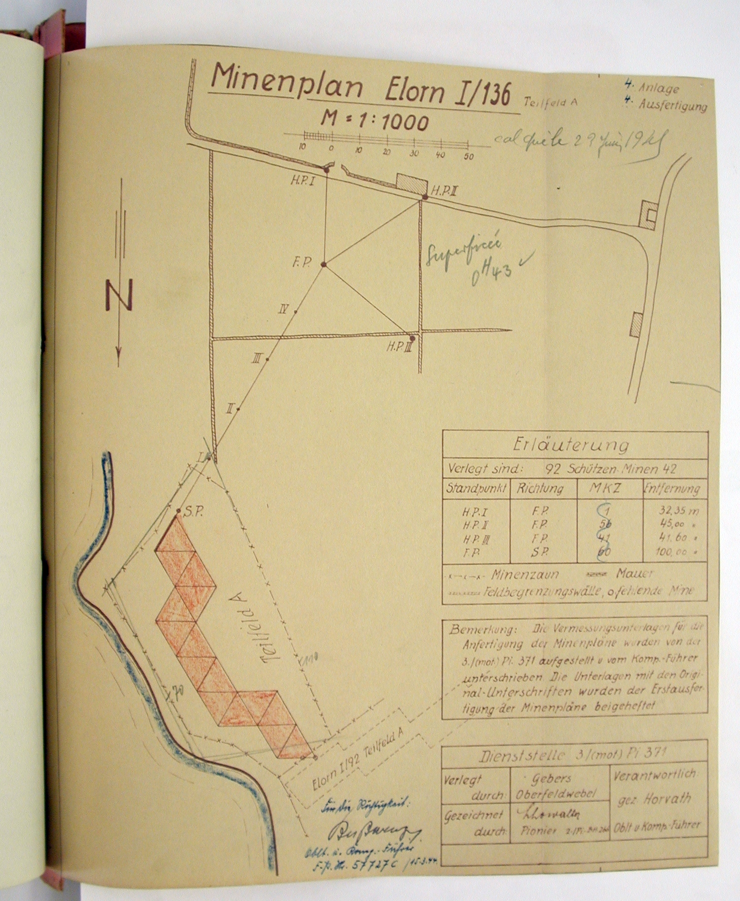 Plan de détail du champ de mines Elorn I/136 posé le 28 septembre juillet 1943 (3./Pi./Btl. 371 : 42294D)Immatriculation