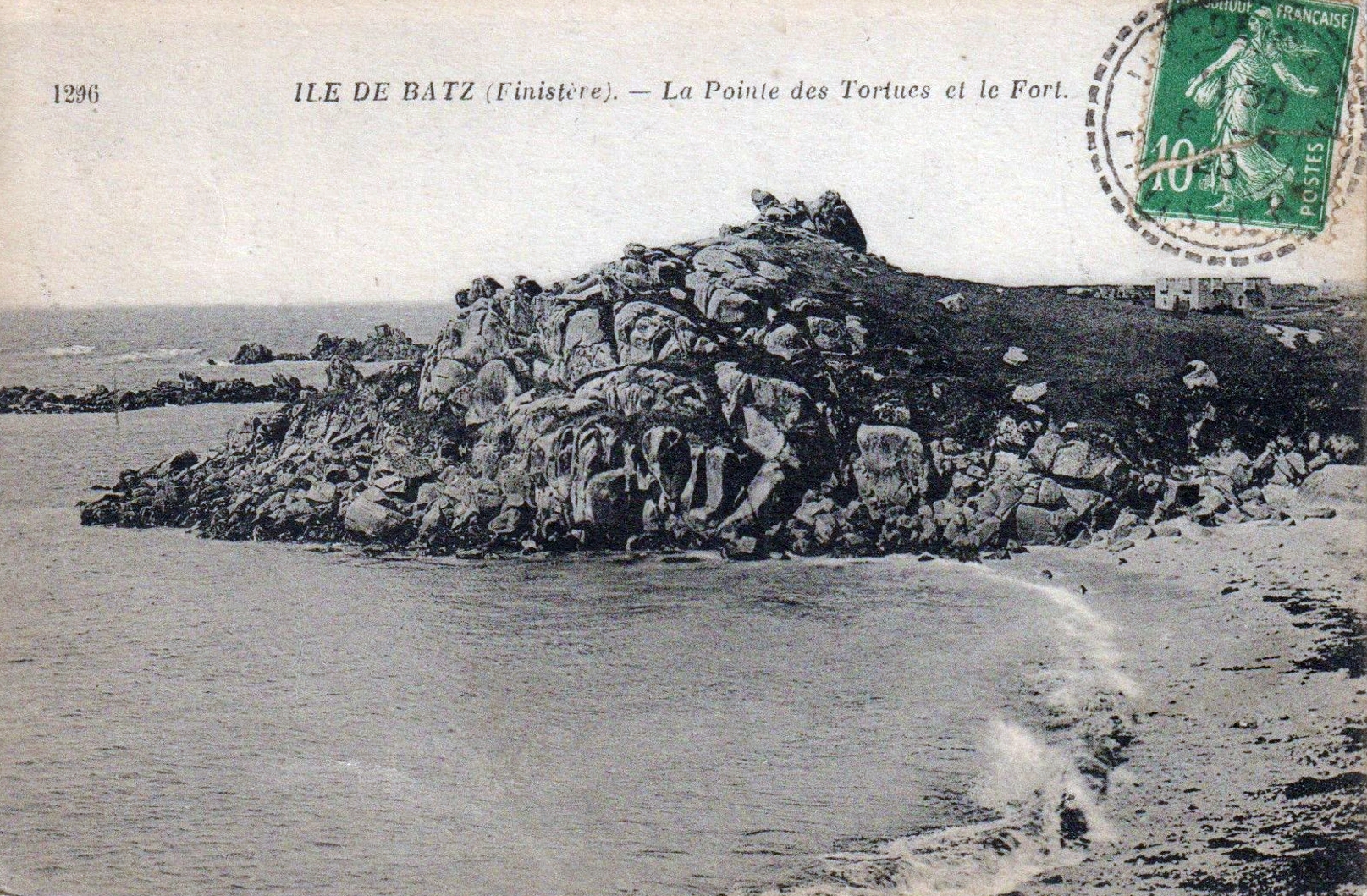 Vue de situation, carte postale (n° 1296). La légende indique : La Pointe des Tortues et le FortImmatriculation