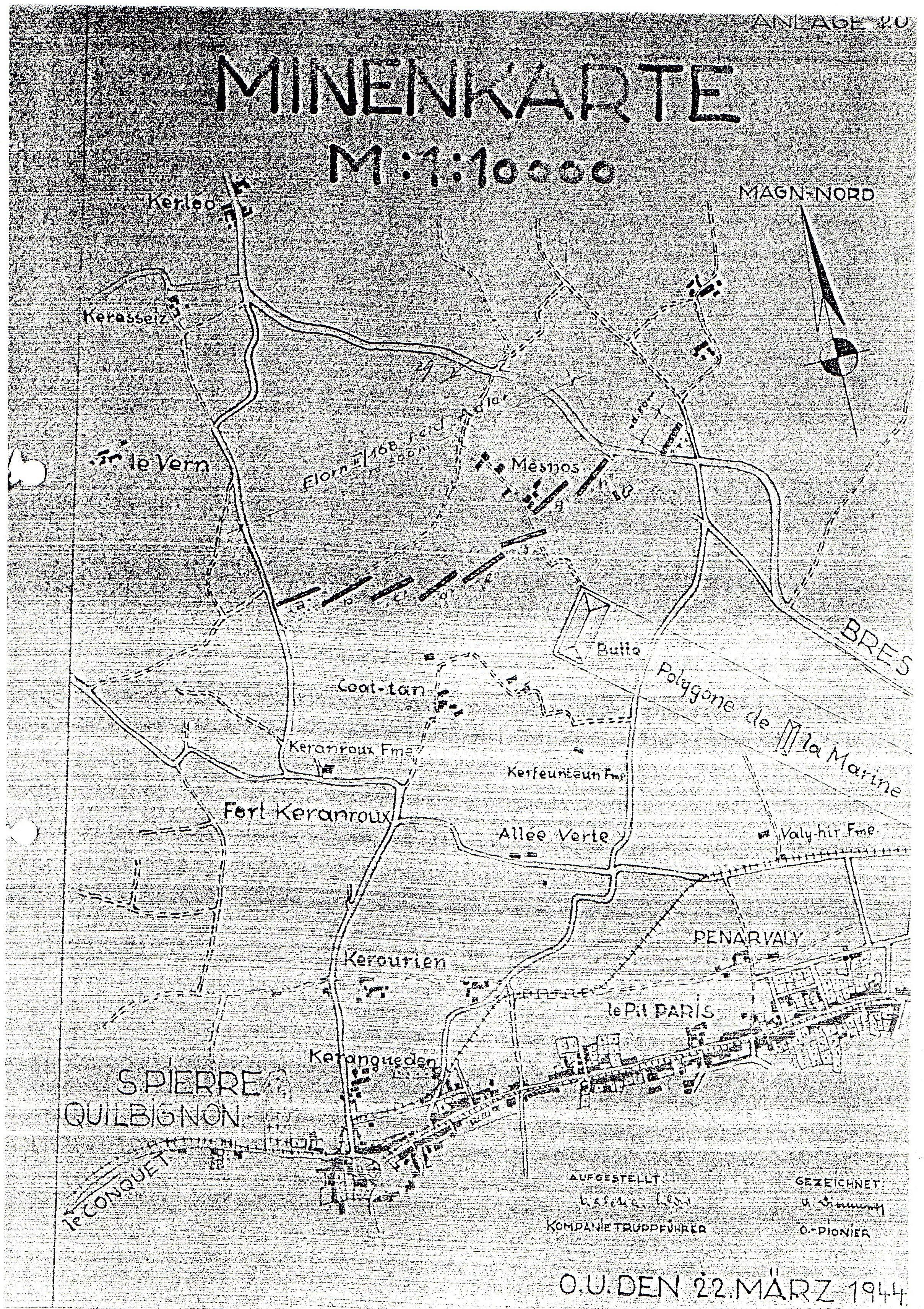 Plan de situation du champ de mines Elorn II/168 feld Adler, 22 mars 1944Immatriculation