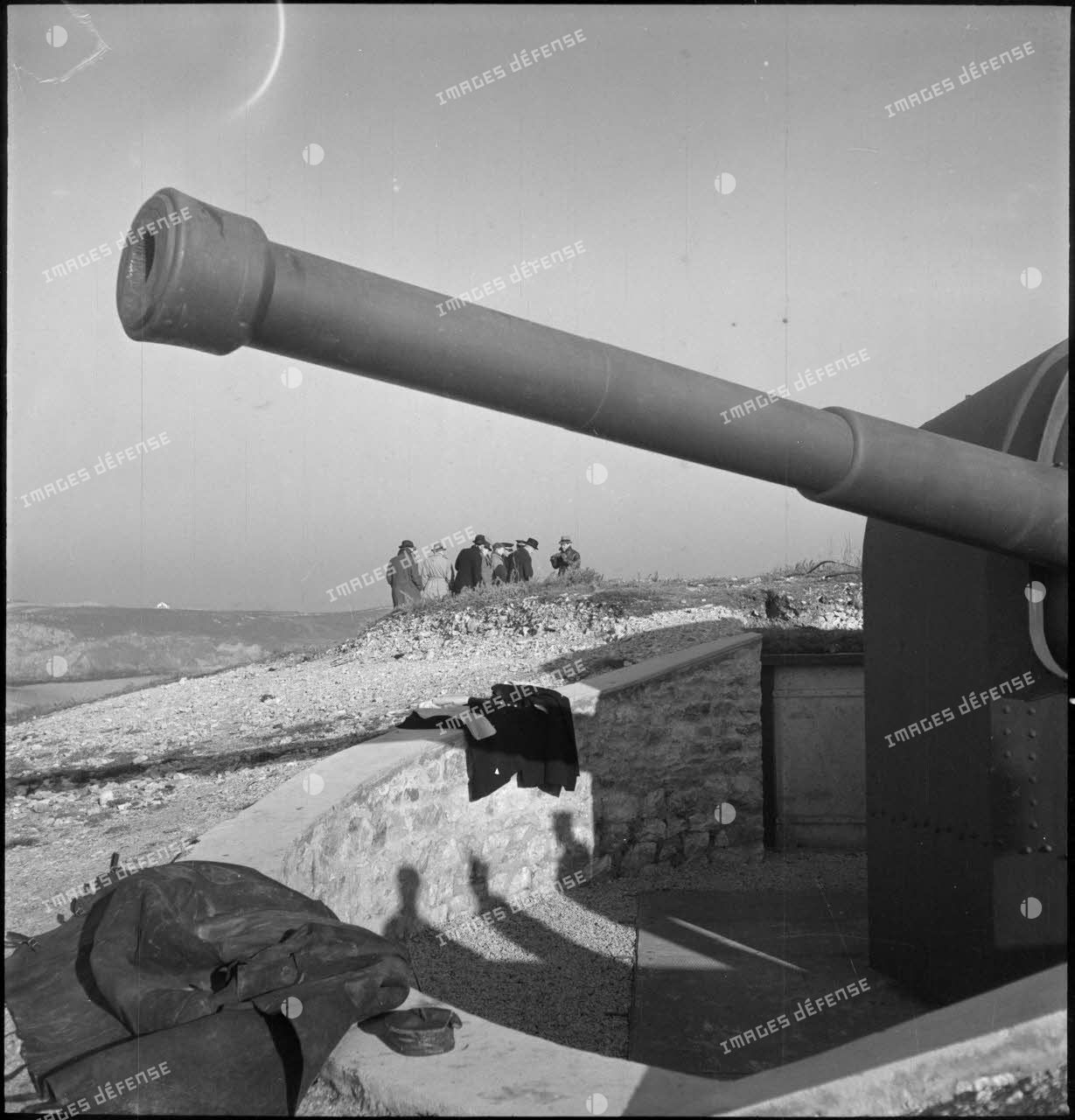 Photographie de l'un des canons de la batterie de Kerbonn par Jean Manzon à l'occasion de la visite à Brest de journalistes américains en 1940, Images Défense.