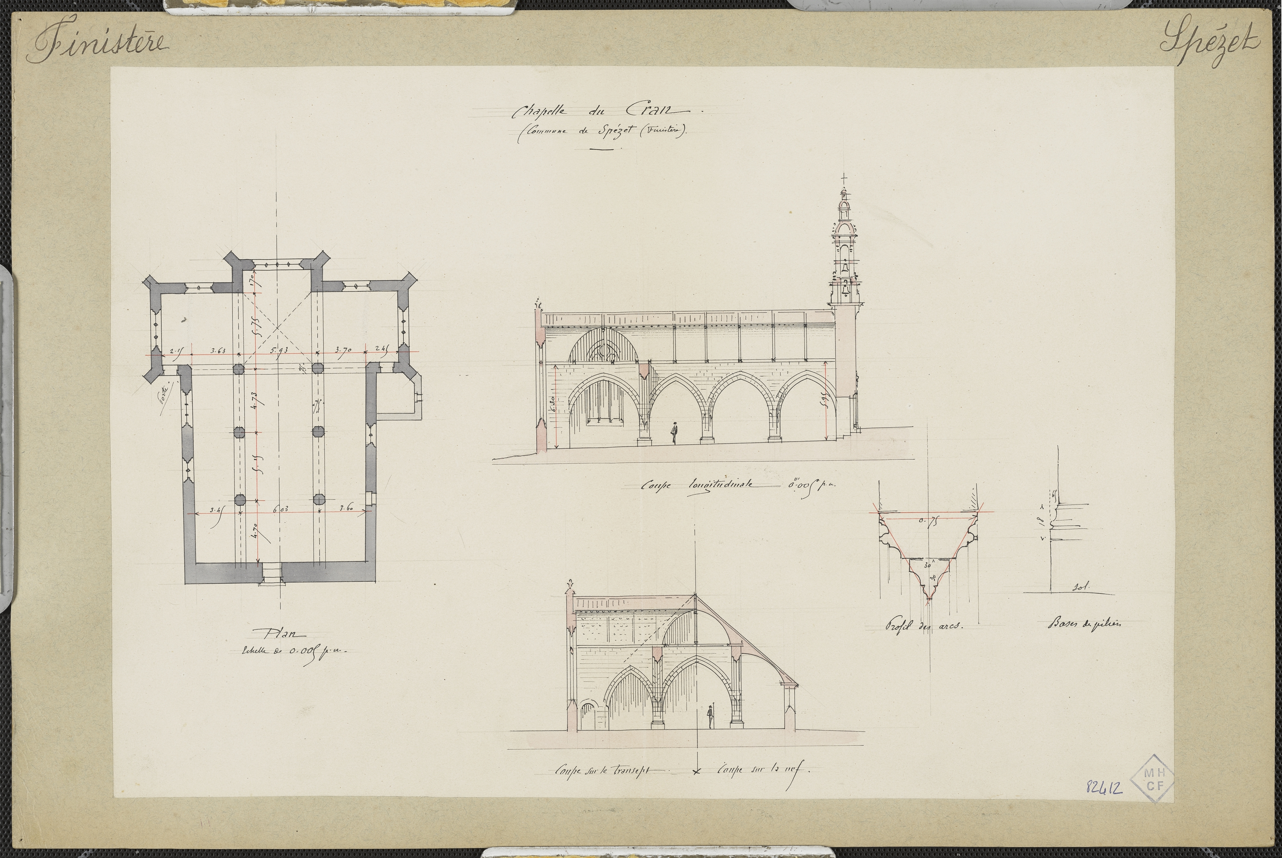 Plan et coupes sur la chapelle Notre-Dame du Crann, Médiathèque du Patrimoine et de la Photographie, 82-29-2013