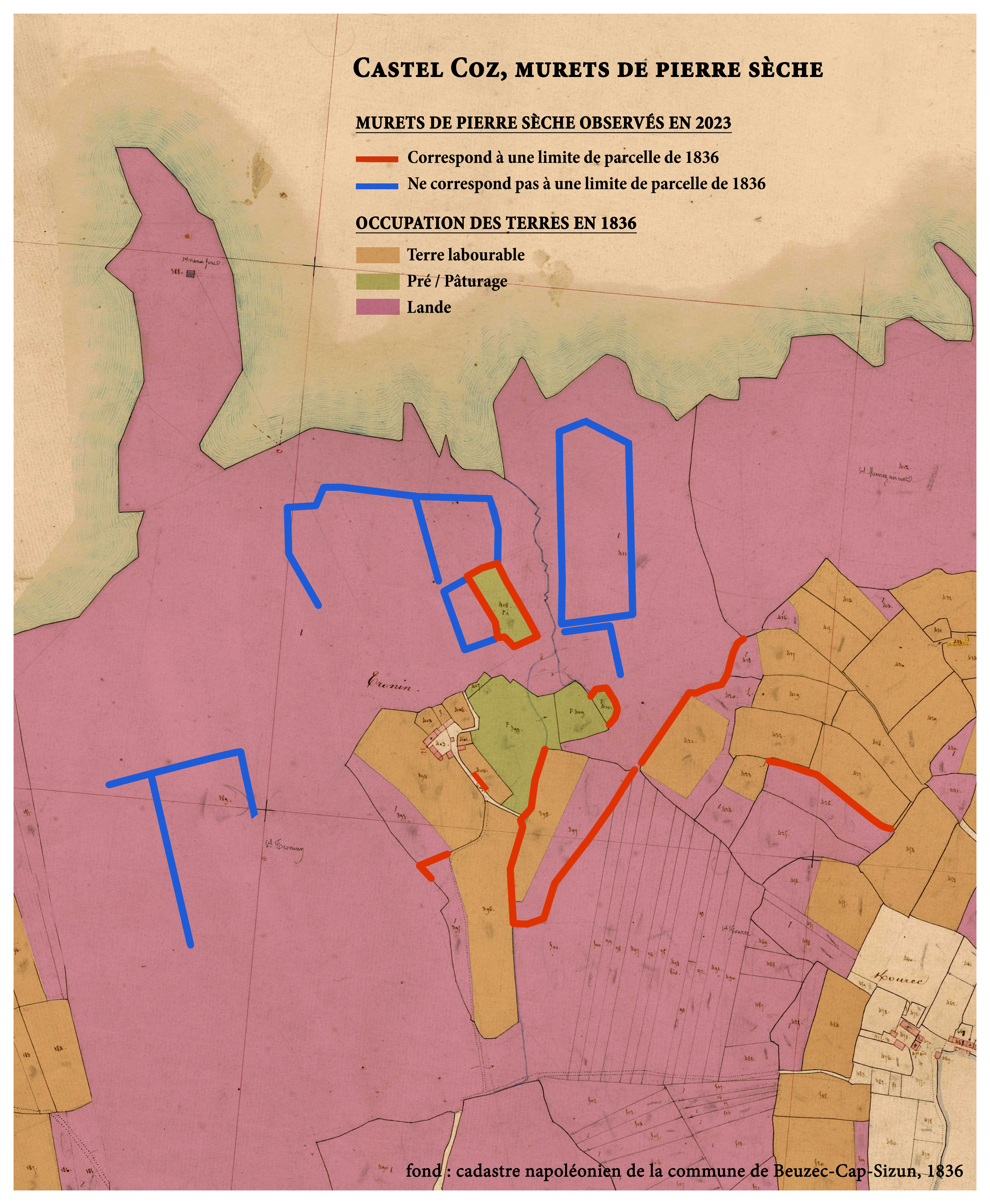 Occupation des sols en 1836. Fond : Cadastre ancien de la commune de Beuzec-Cap-Sizun.Immatriculation