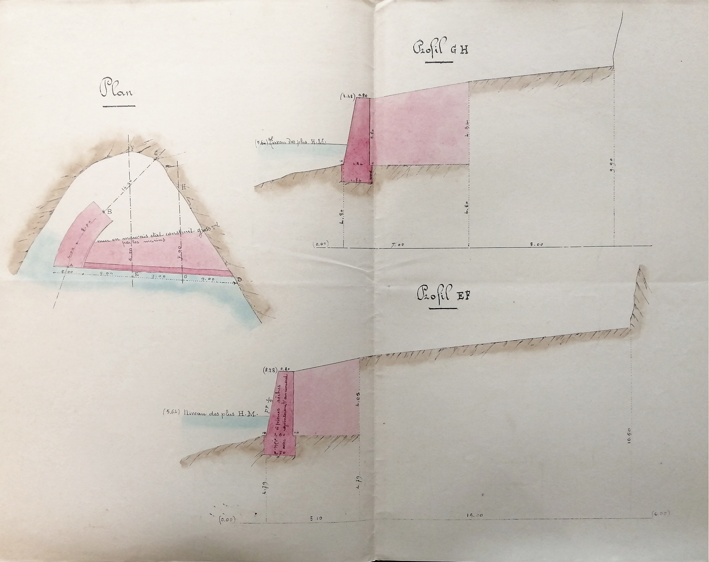 Plateforme et d'un plan incliné, 1889. Reproduction plan des Ponts et Chaussées.Immatriculation