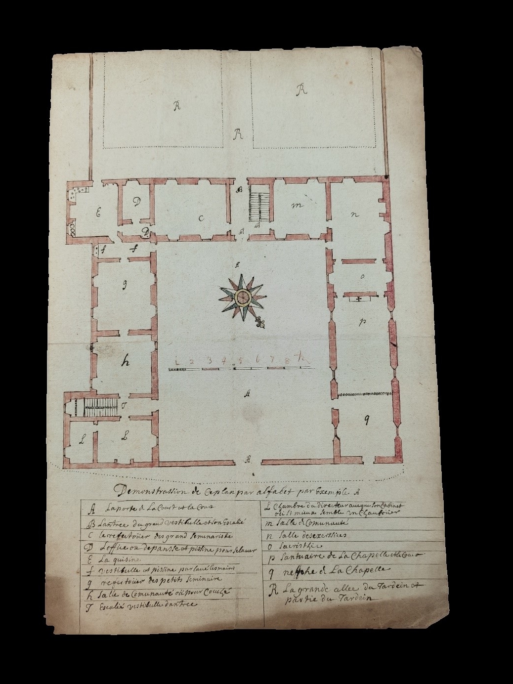 Plan au sol de l’ancien petit séminaire de Rennes — rue Saint-Hélier — 1G 388 2, AD35 (XVIIIe siècle)
