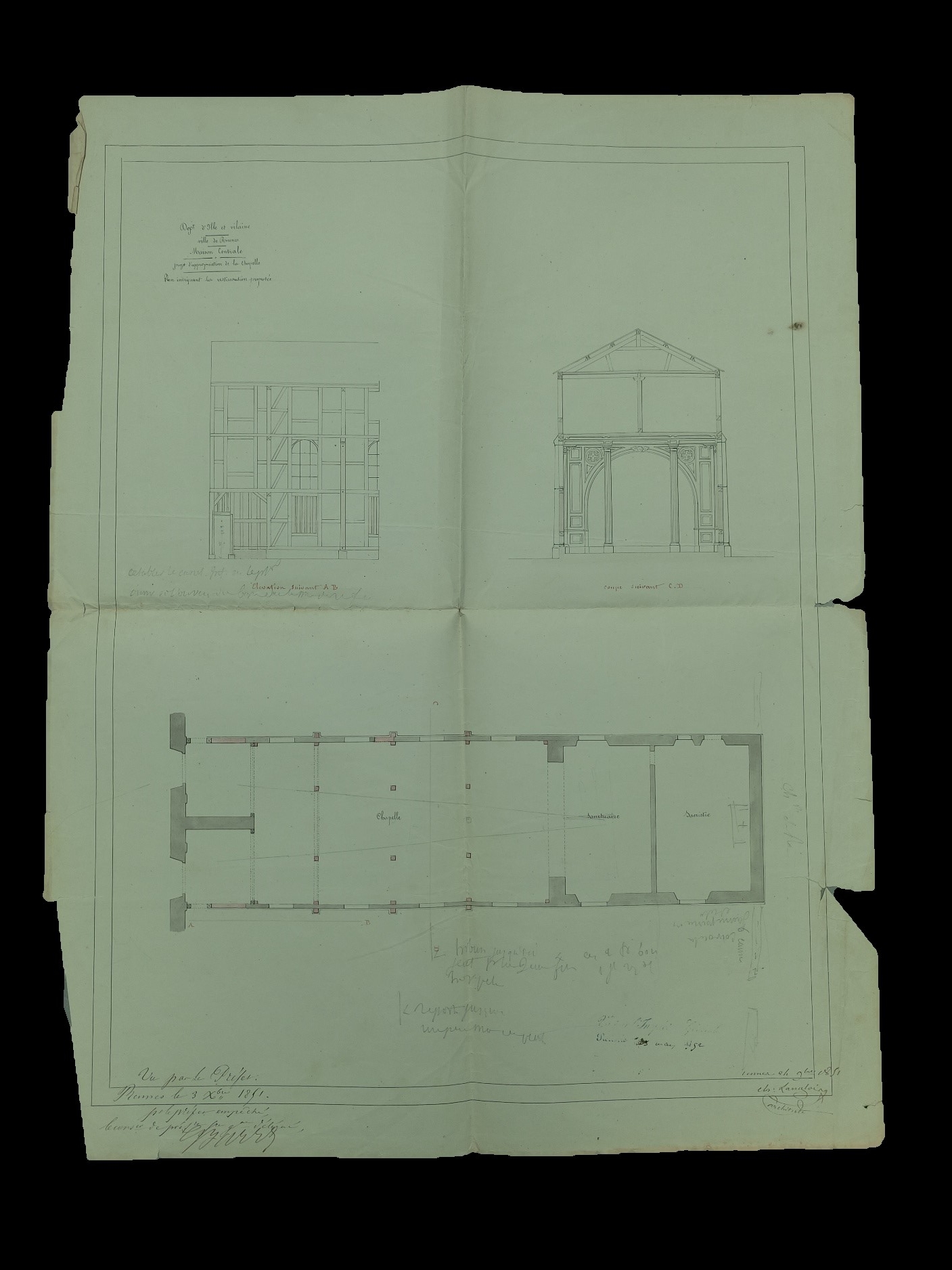Projet d’agrandissement de la chapelle, le 18 octobre 1854, par Langlois, architecteImmatriculation