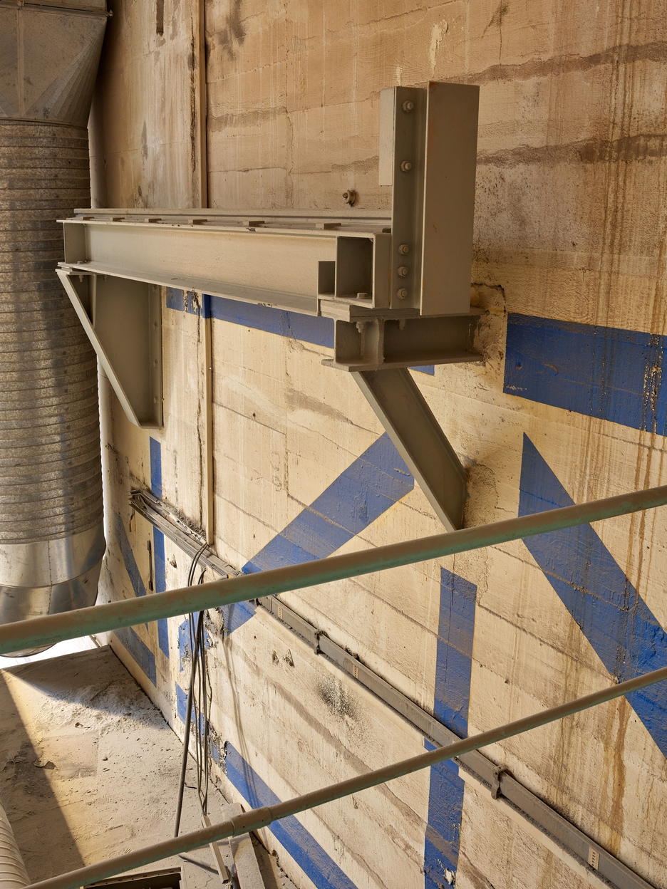 Vue de l'extrémité du chemin de roulement du pont roulant de la nef n° 3Immatriculation