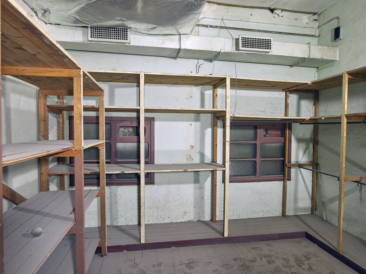 Vue de l'une des pièces du troisième étage de la nef n° 3 : bureau (en 1945), transformé en magasin avec étagères de rangement. A signaler : baies en second jour, plancher en bois et système de ventilation par bouches de soufflageImmatriculation