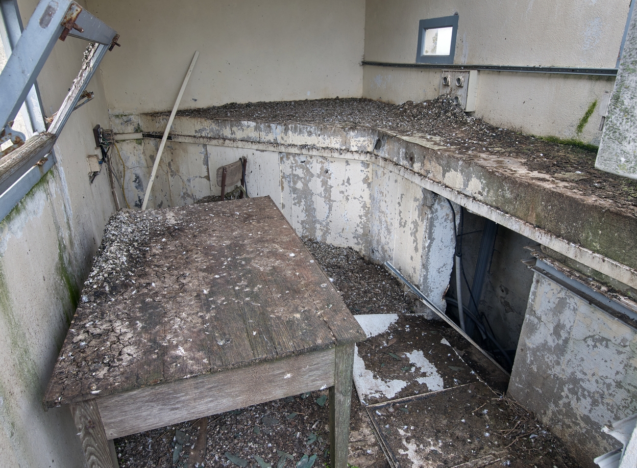 Vue du bunker du double encuvement antiaérien situé sur la dalle de couverture : intérieur du poste d'observation de l'encuvement estImmatriculation