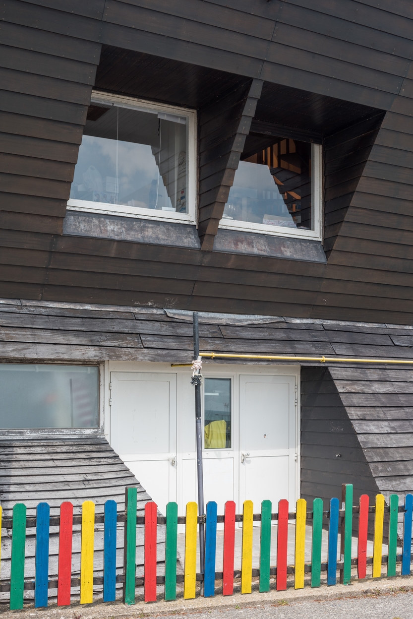 Club house, aile nord, appartements couchettes permettant d'héberger élèves et moniteurs. Architecte Yves Guillou.Immatriculation