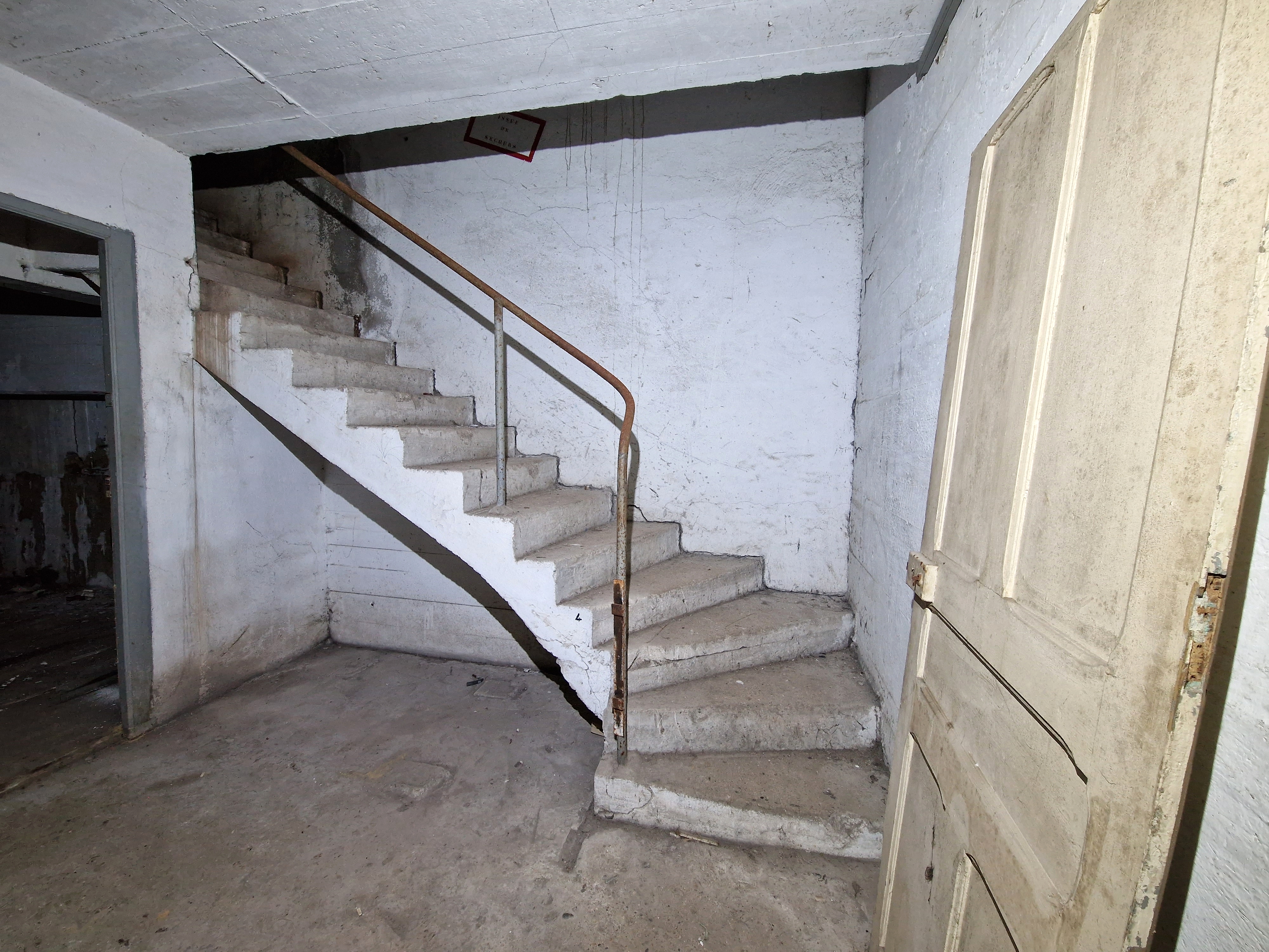 Locaux techniques, partie nord, entresol : cage d'escalier. Cet étage en entresol est doté de deux pièces, dont l’une avec fenêtre donnant sur la grande salle du rez-de-chausséeImmatriculation