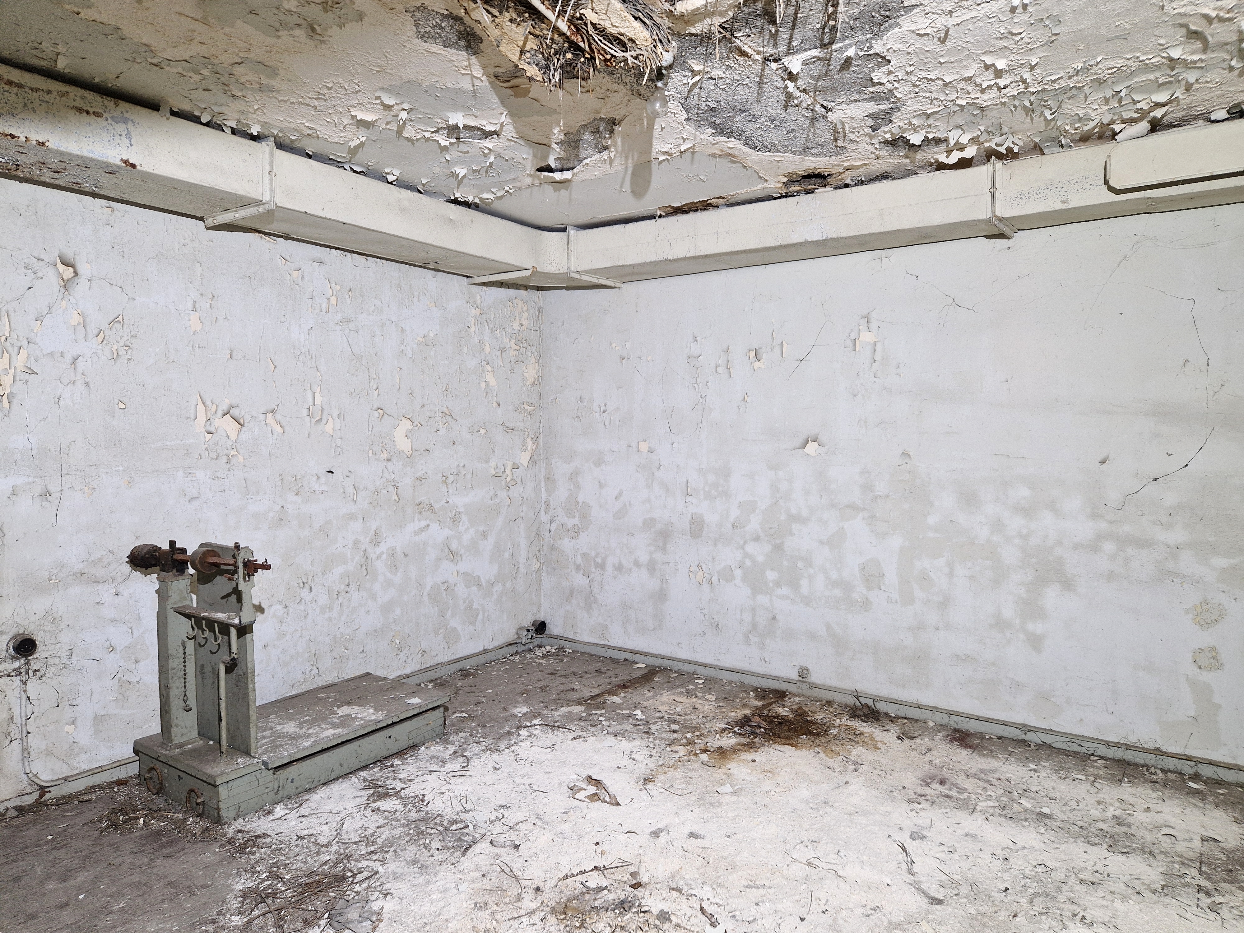 Locaux techniques, partie nord, premier étage : l'une des deux pièces sur plancher (à usage de bureau ?). A gauche, une balanceImmatriculation