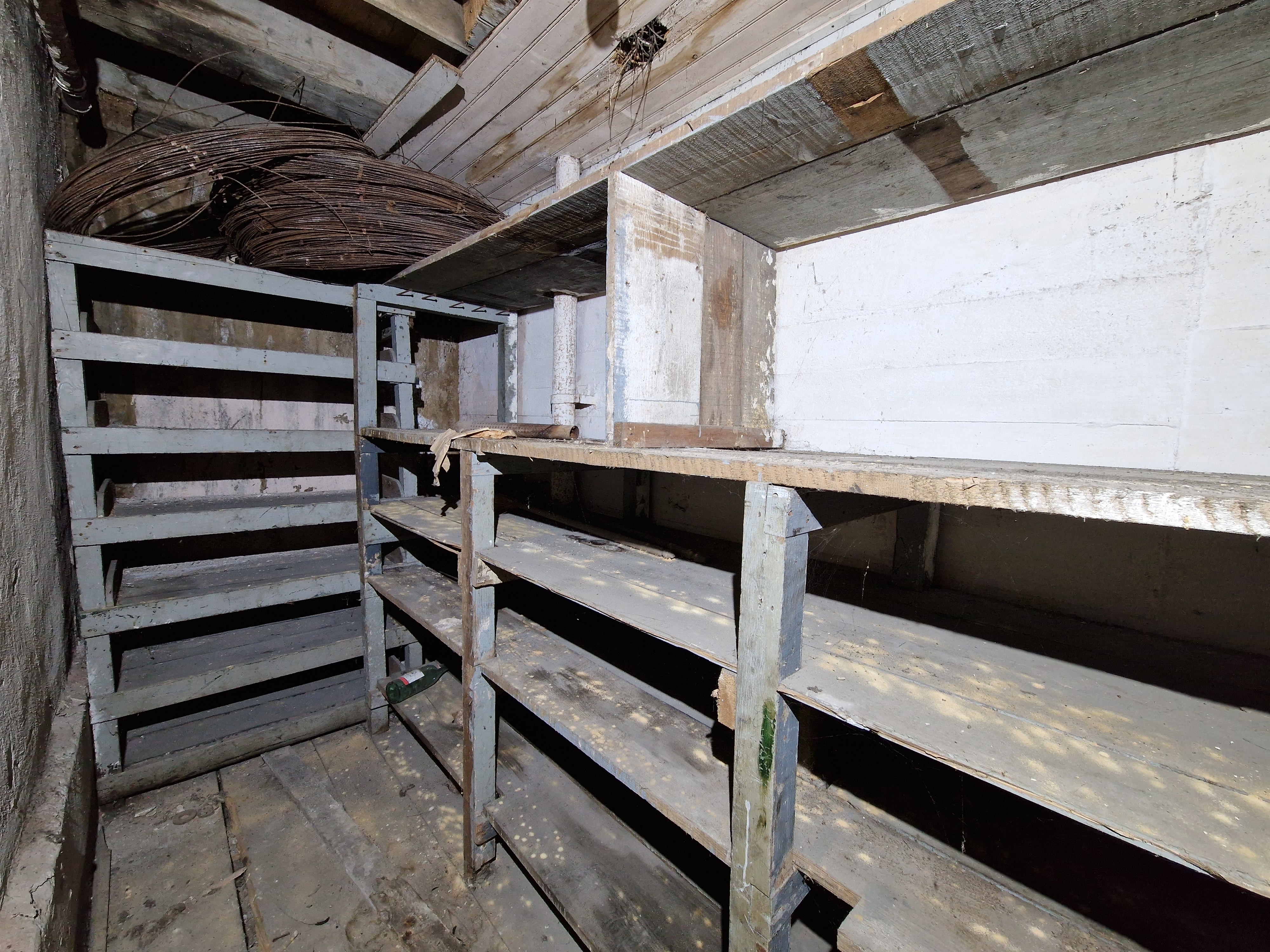 Locaux techniques, partie nord, premier étage : petit magasin avec étagères de stockageImmatriculation