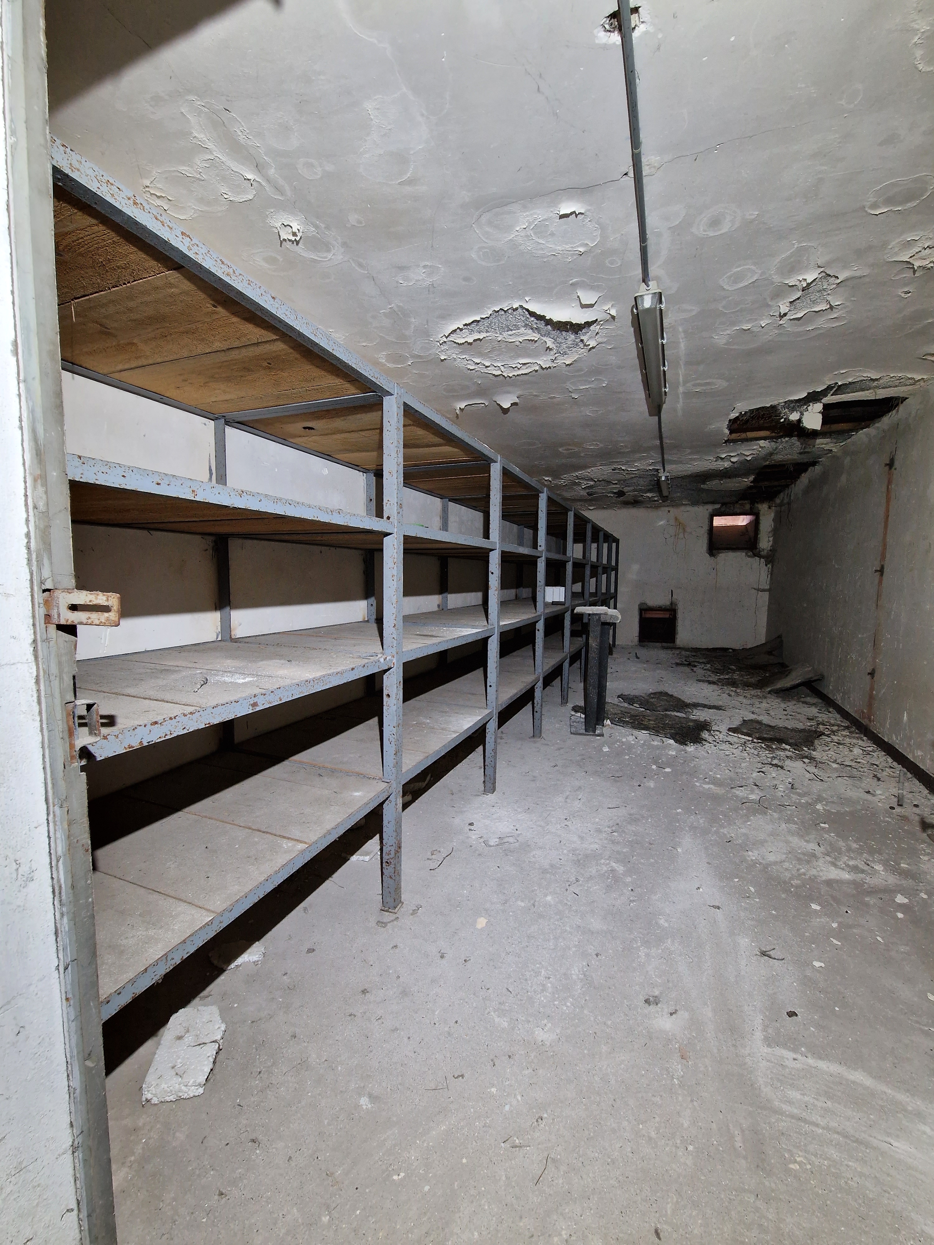 Locaux techniques, partie nord, premier étage : magasin n° 5 (les étagères métalliques sont en place)Immatriculation