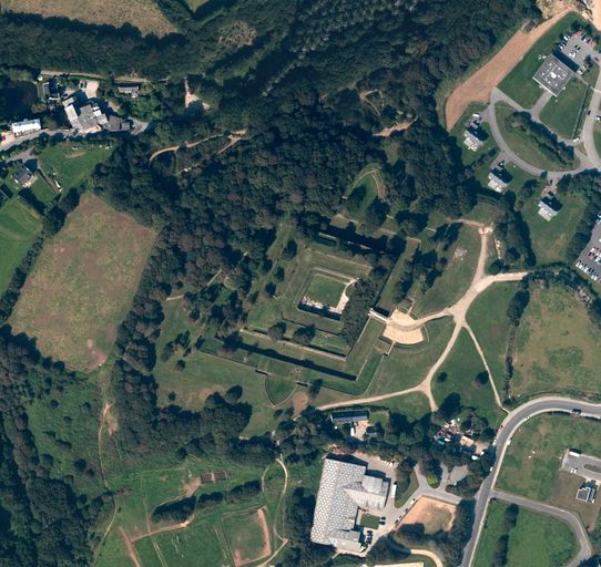 Plan de la redoute sur le fonds de la vue aérienne verticale, Brest Métropole Océane (photos n° 91_101, 91_102, 92_101, 92_102)